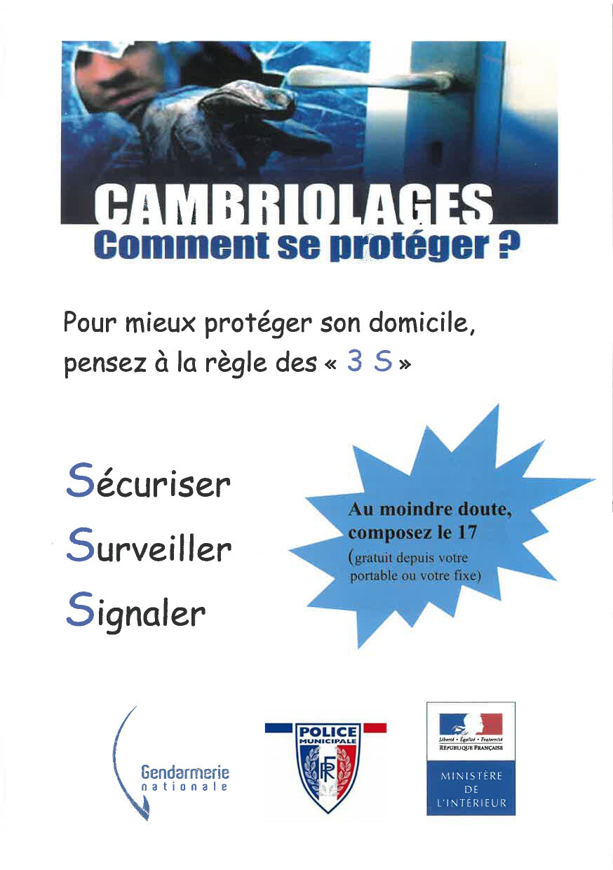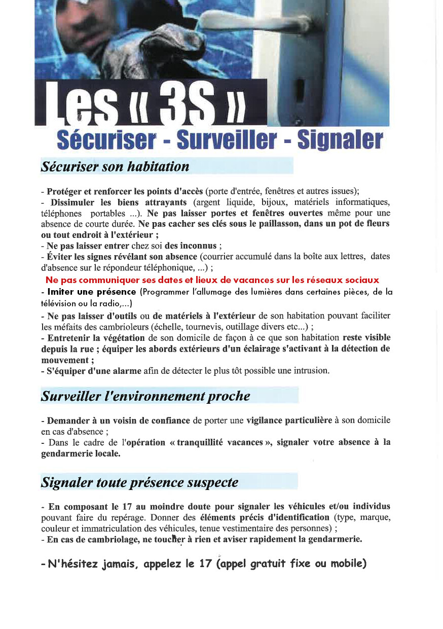 Soyez vigilants et merci de signaler à la gendarmerie et à la police municipale tout comportement inhabituel : présence de véhicule suspect, individus inconnus…