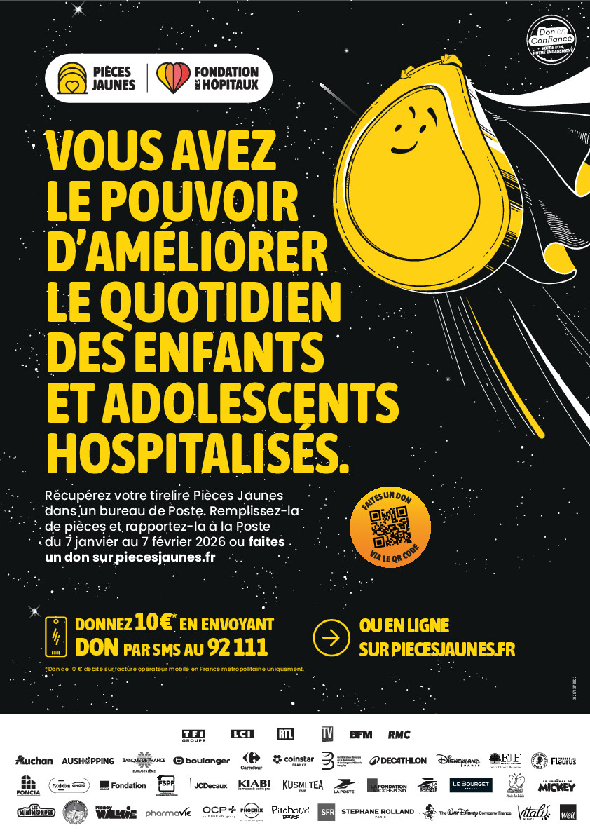 "Pièces Jaunes" afin de financer des actions visant à améliorer le quotidien des enfants et des adolescents à l'hôpital :