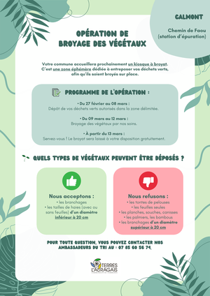 📢 La Communauté de Communes de Terres du Lauragais renouvelle l'opération de broyage des végétaux.