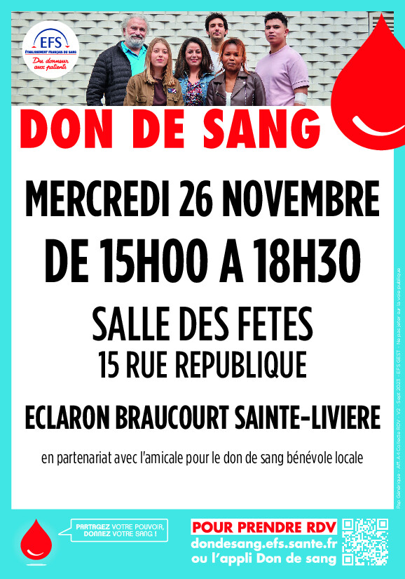 Don de sang à la Salle des Fêtes d'Eclaron le mercredi 26 novembre