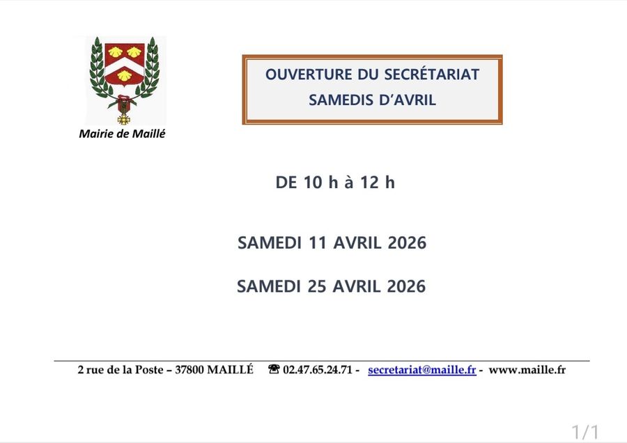 Ouverture du secrétariat les samedis d'avril