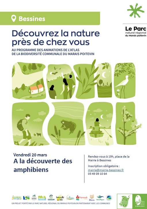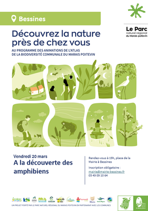 Dans le cadre de l'Atlas de la Biodiversité Communale du PNR du Marais Poitevin, venez découvrir et observer les amphibiens du territoire de Bessines, et en apprendre plus sur cette classe trop souvent confondue avec les reptiles.