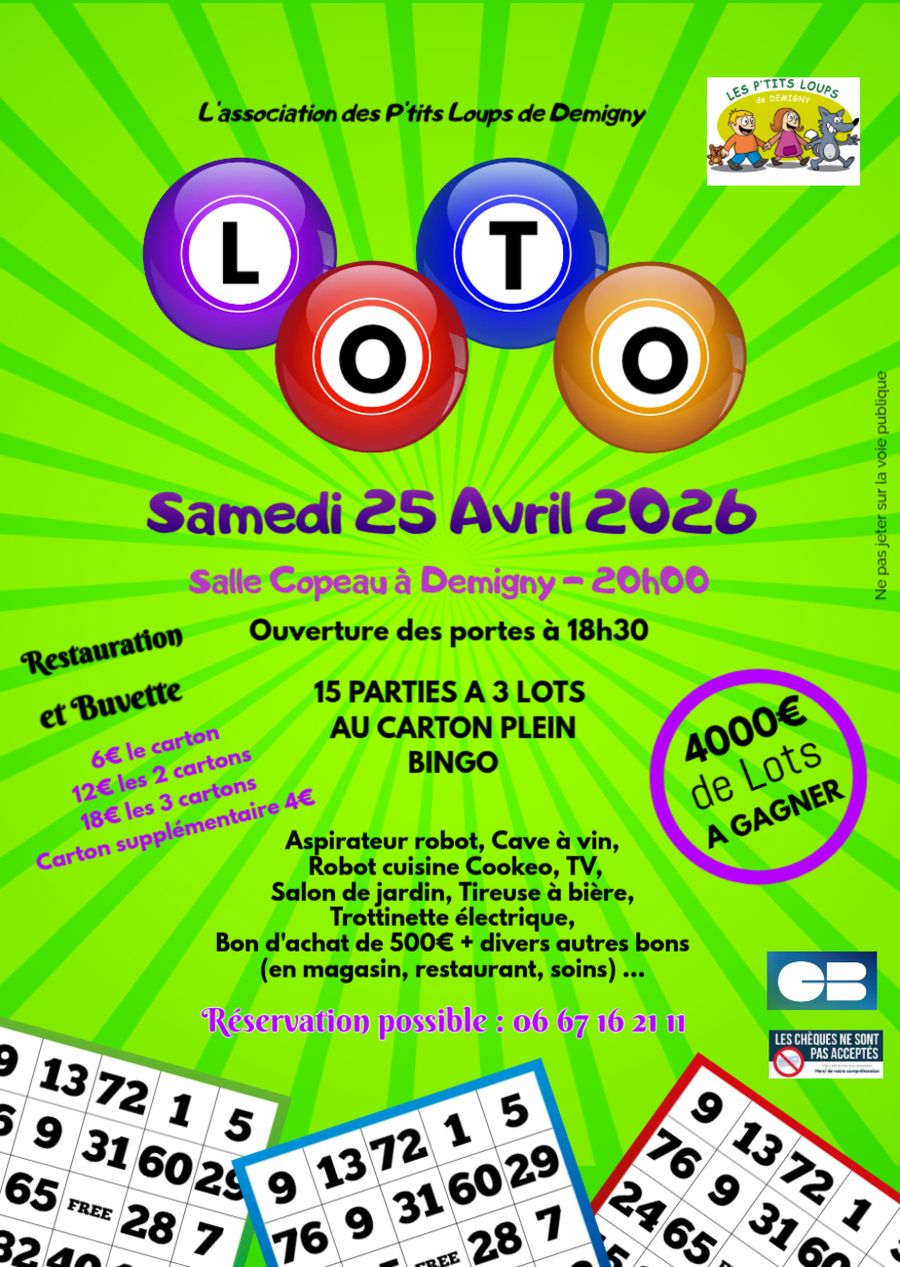 Venez nombreux au Loto des P'tits Loups dont les bénéfices sont reversés à l'école de Demigny.