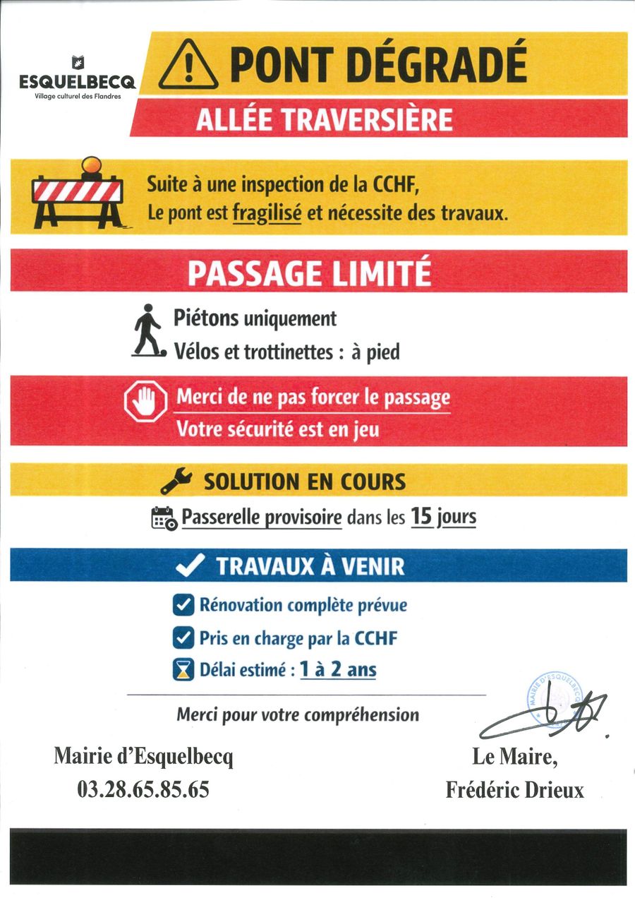 Suite à une inspection réalisée par la CCHF sur l’ensemble des ponts du territoire, celui de l’allée traversière a été identifié comme dégradé et nécessitant des travaux de rénovation.