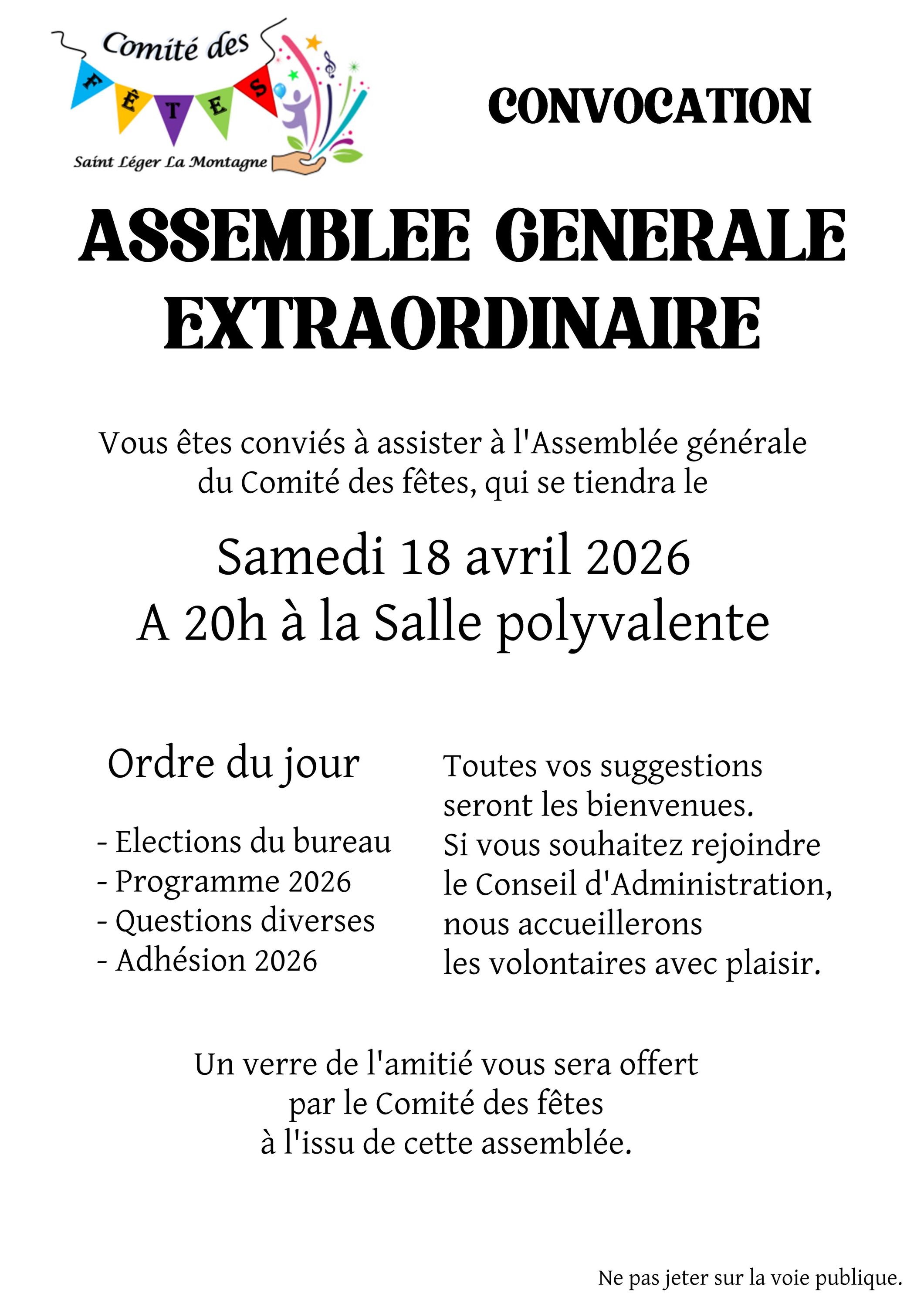 Le Comité des fêtes de Saint-Léger-la-Montagne organise une Assemblée Générale le