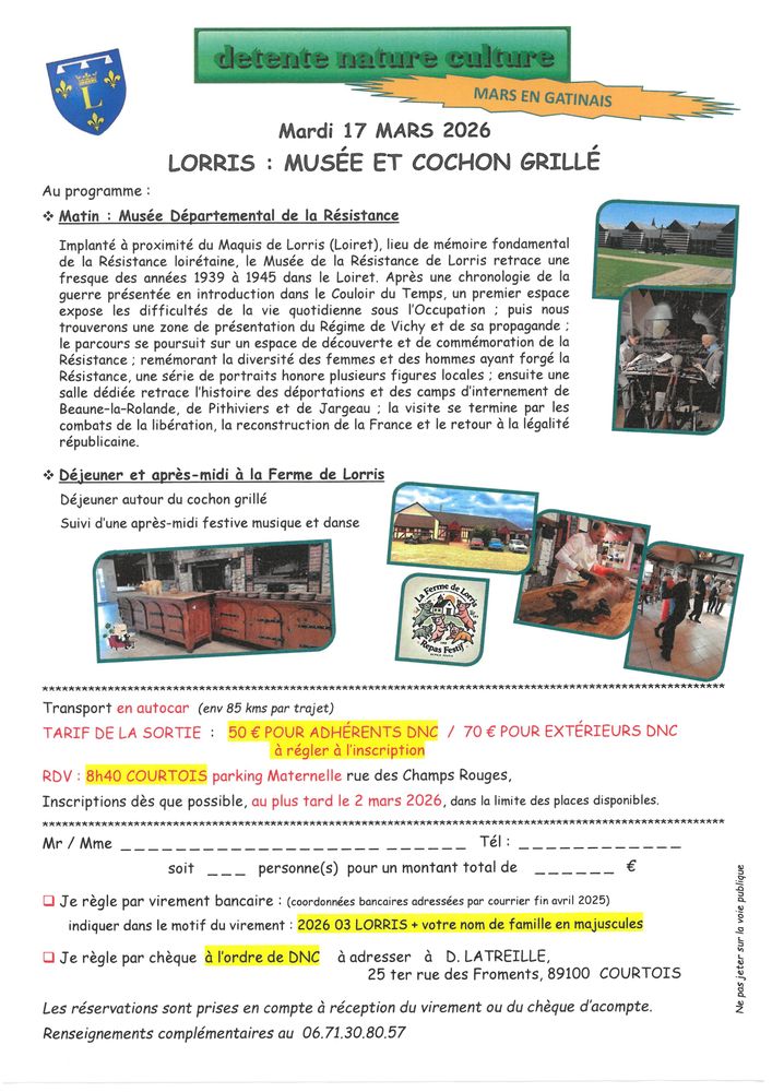 DNC, LORRIS : MUSÉE & COCHON GRILLÉ