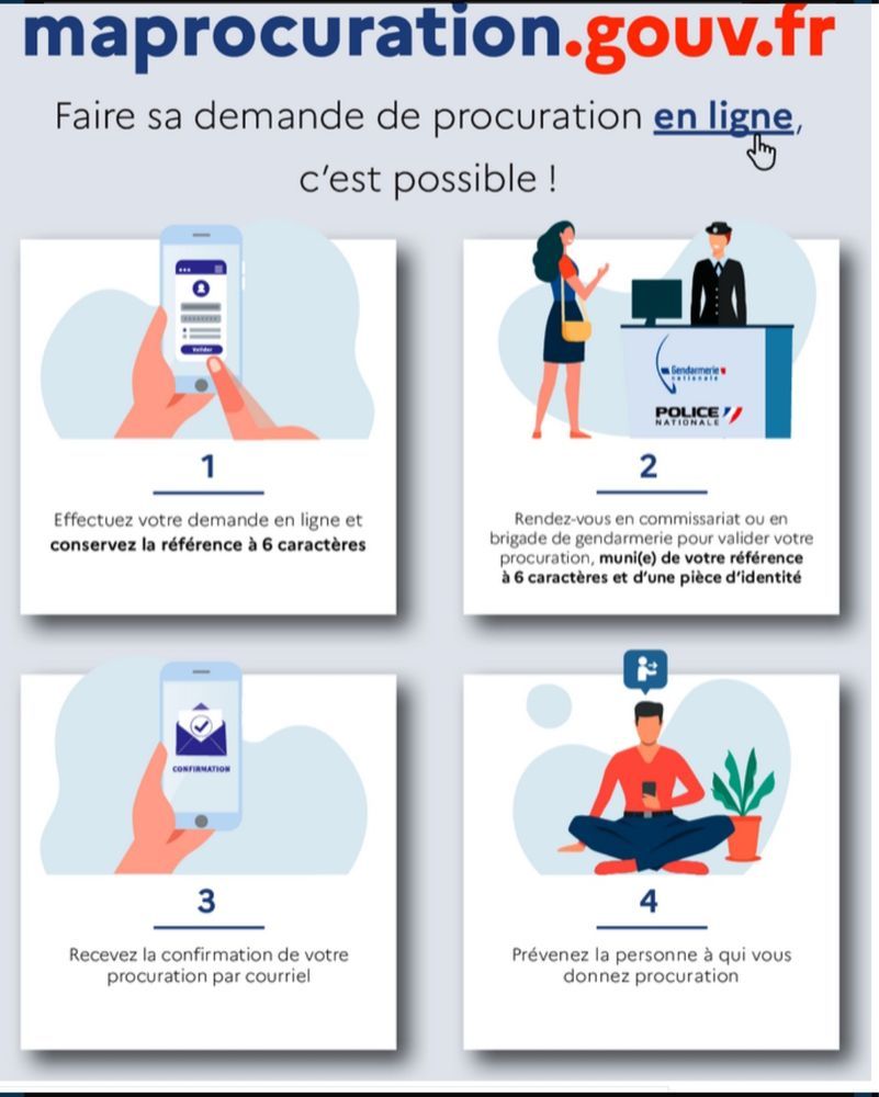 N’hésitez pas à anticiper une procuration si vous savez que vous serez absent. La demande peut être faite en ligne sur le portail officiel https://www.maprocuration.gouv.fr/