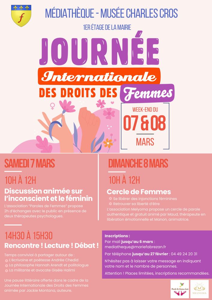 À l’occasion de la Journée Internationale des Droits des Femmes, la Médiathèque vous propose un week-end d’échanges, de réflexion et de partage 💬💜