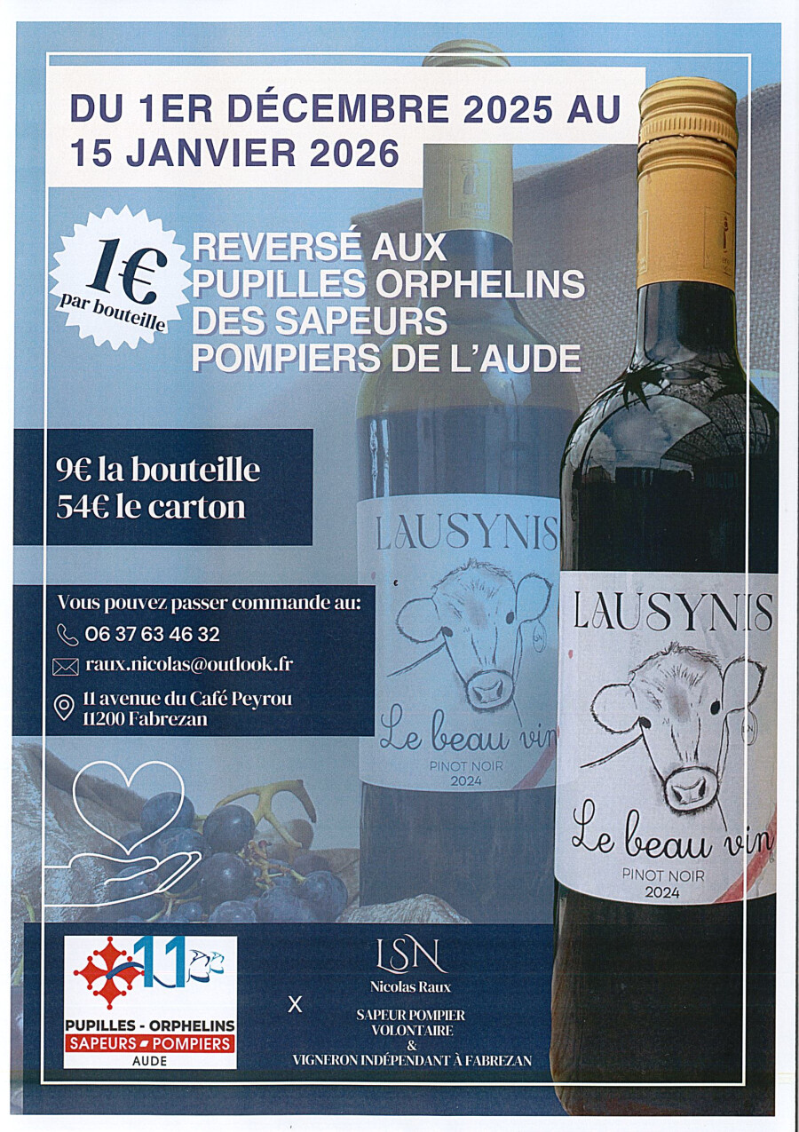 ➡️ 1 € est reversé aux Pupilles Orphelins des Sapeurs-Pompiers de l’Aude.