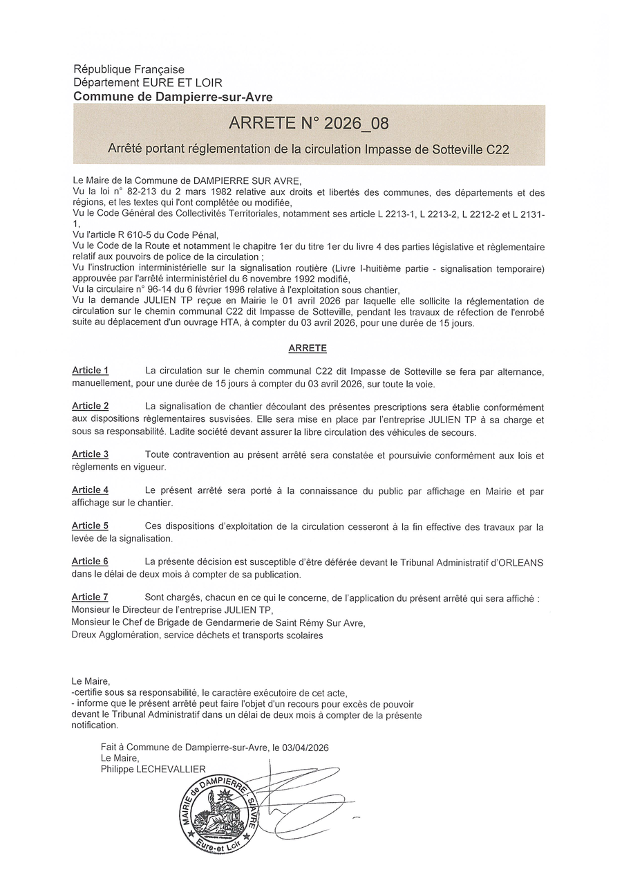 Réfection d'enrobé avec restriction de circulation à partir du 03 avril 2026