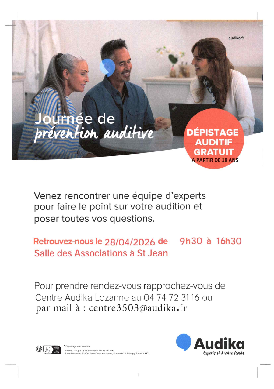 Dépistage auditif gratuit en salle asso, sur RDV auprès de AUDIKA.
