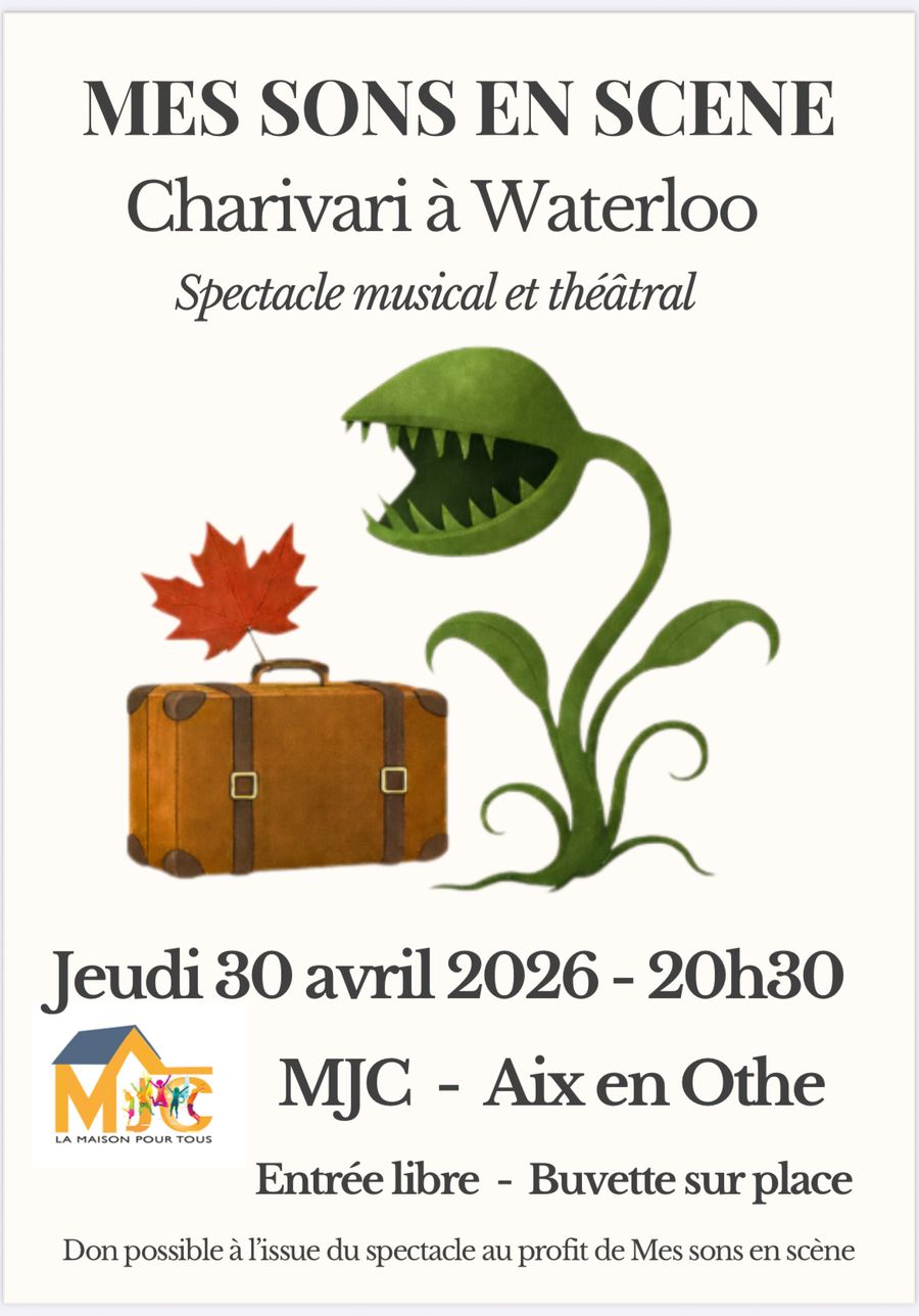 🎶✨ La MJC d’Aix en Othe vous invite à une soirée exceptionnelle avec « Charivari à Waterloo », un spectacle musical et théâtrale présenté par Mes Sons en Scène !