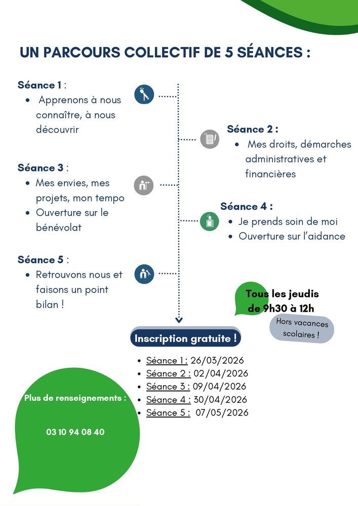 Au programme : mieux se connaître, comprendre ses droits, préparer ses projets, découvrir le bénévolat, prendre soin de soi et faire le point ensemble.