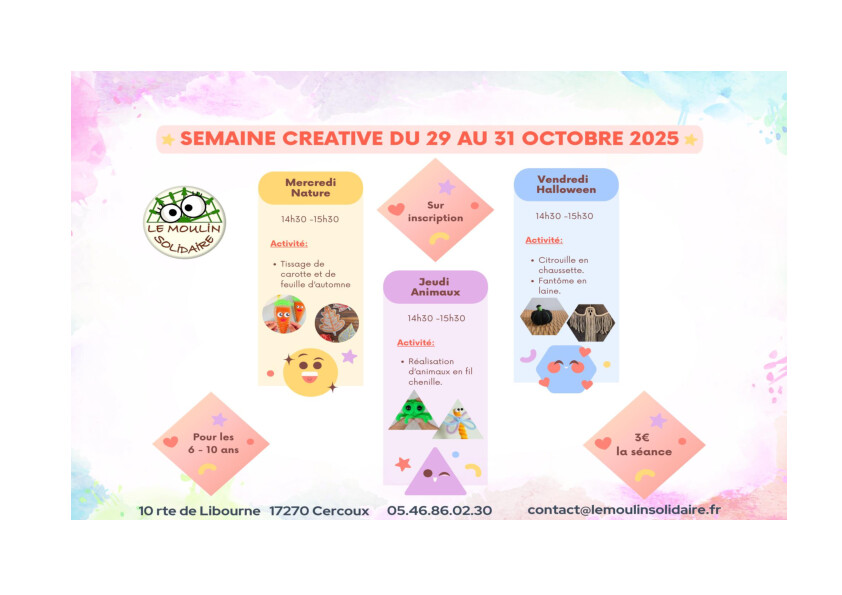 ORGANISE LA SEMAINE CREATIVE DU 29 AU 31 OCTOBRE