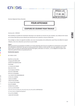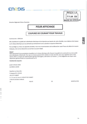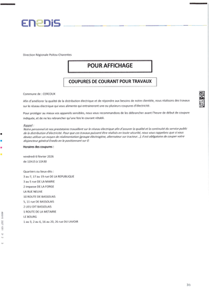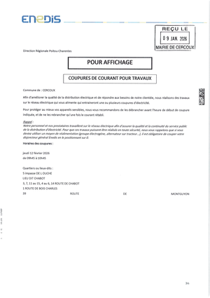 Coupures de courant pour travaux jeudi 12 février