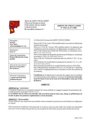 Vous trouverez ci-joint l'arrêté, ainsi que le plan de déviation.