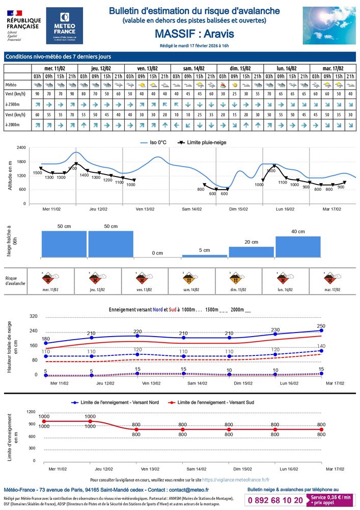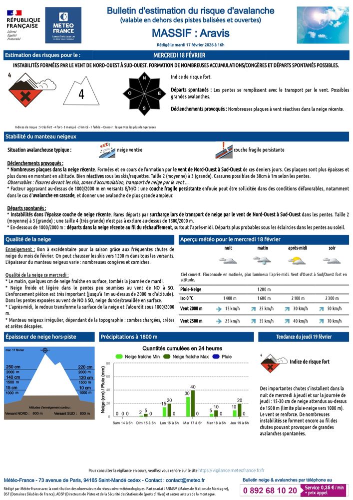La Préfecture de la Haute-Savoie place le massif des Aravis au niveau d'alerte pour le risque d'avalanches :