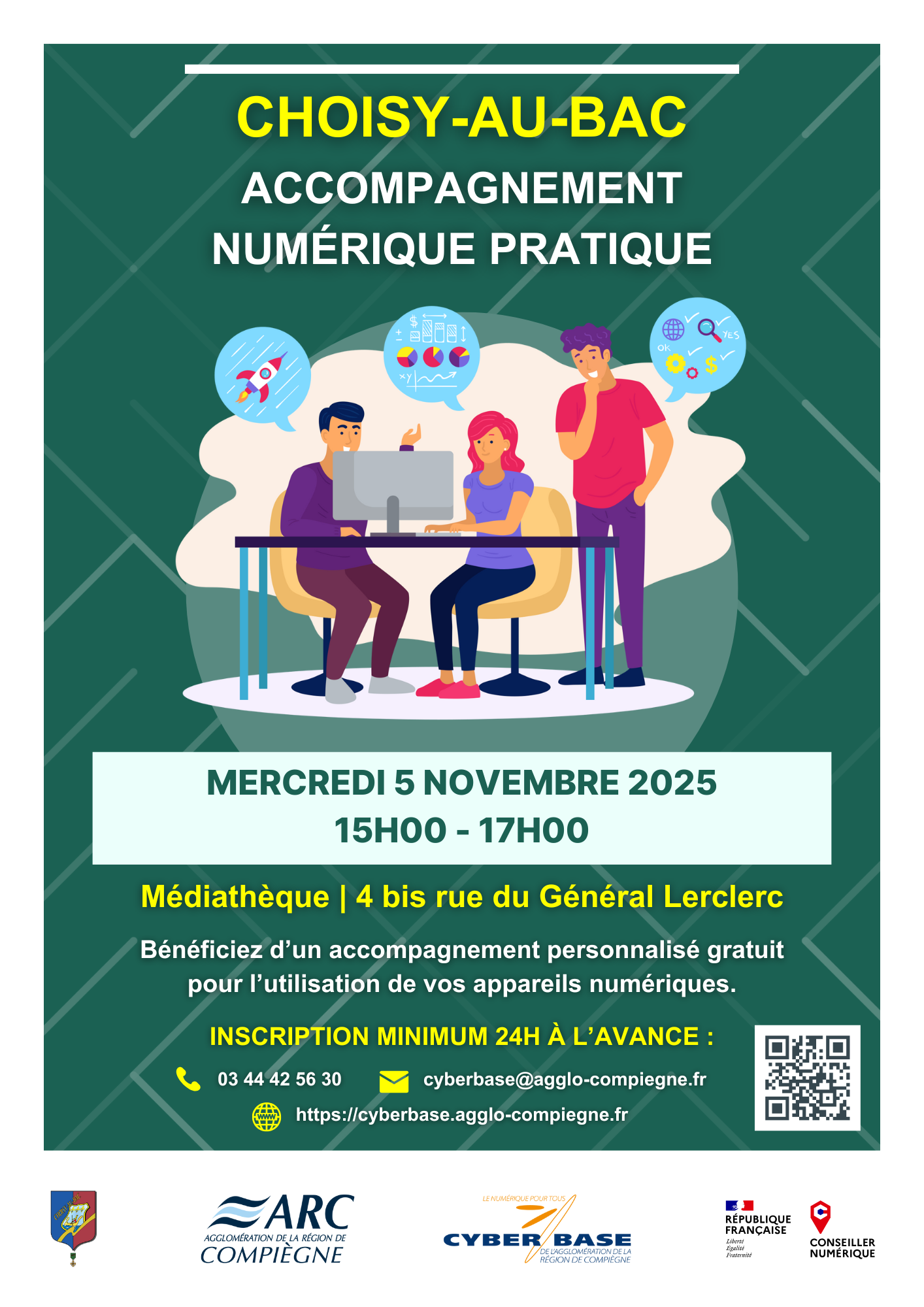 au 03.44.42.56.30 ou cyberbase@agglo-compiegne.fr