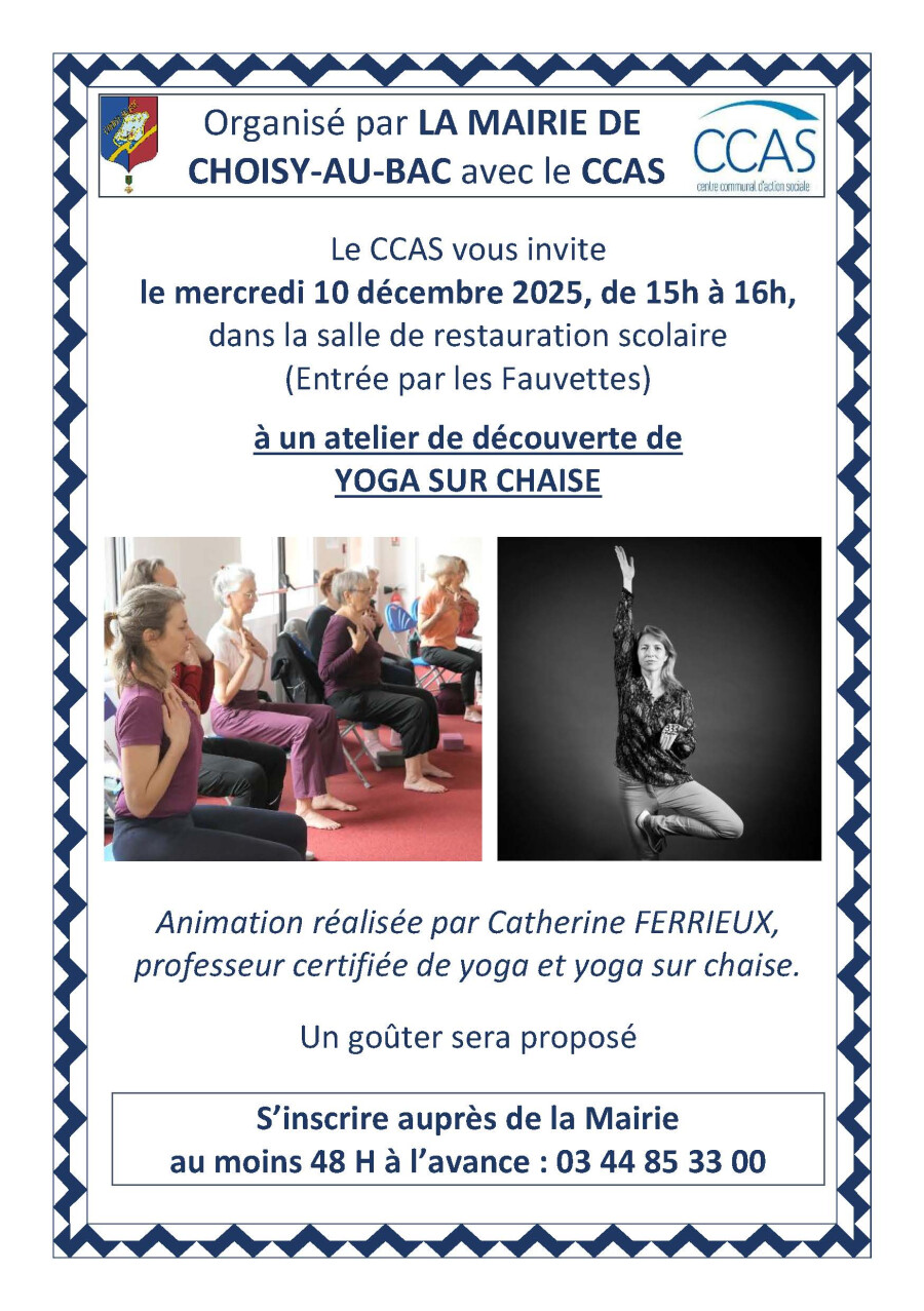 à un atelier de yoga (assis) sur chaise, suivi d'un goûter