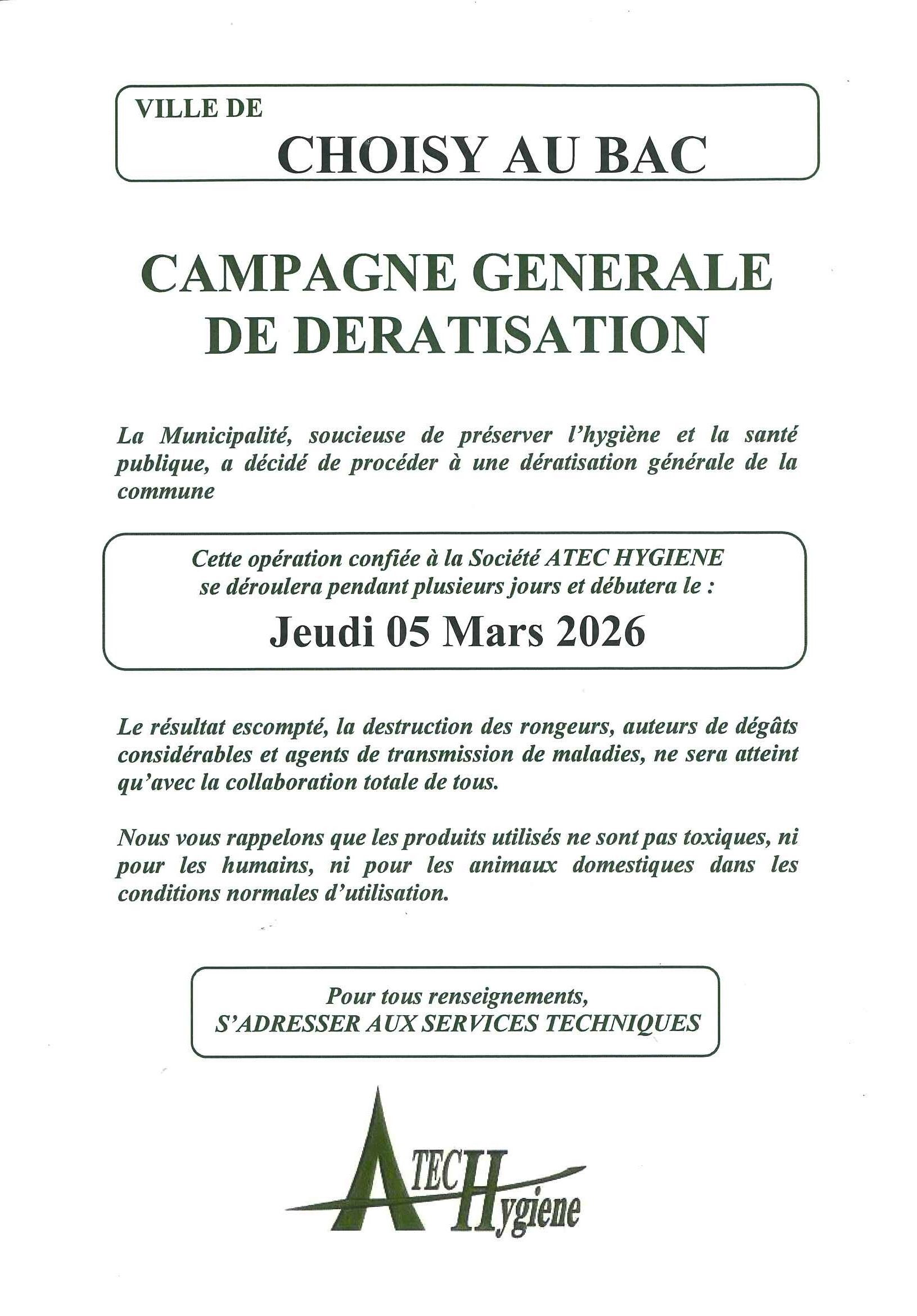 📢 Nous vous informons qu'une campagne générale de dératisation se déroulera sur notre commune pendant plusieurs jours à compter du :