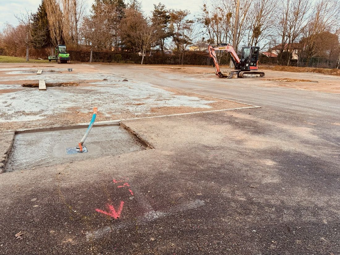Vous trouverez ci-dessous quelques photos de l'avancée du chantier ainsi qu'un croquis délimitant la zone chantier et la zone de parking possible.