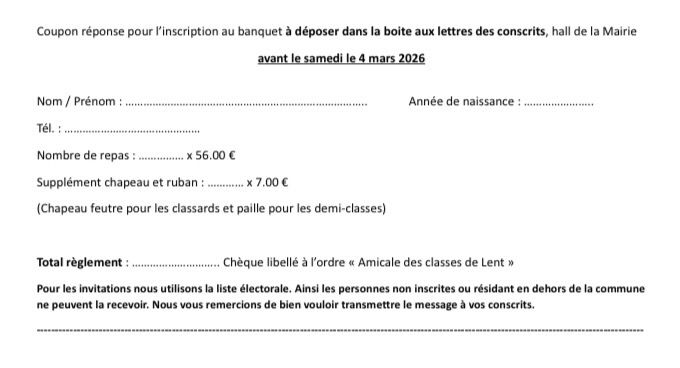 Les conscrits utilisent la liste électorale pour établir leurs invitations. Les personnes non inscrites sur cette liste ou résidant en dehors de la commune ne pourront donc pas la recevoir. Elles sont bien entendu les bienvenues.