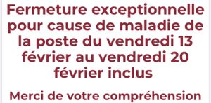 FERMETURE AGENCE POSTALE 13 AU 20 FÉVRIER