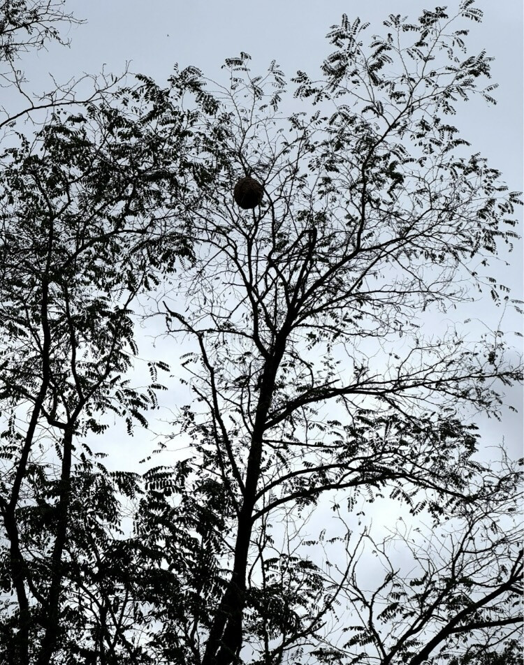 « Les feuilles commencent à tomber, nous découvrons des nids de frelons asiatiques (cf photo)!