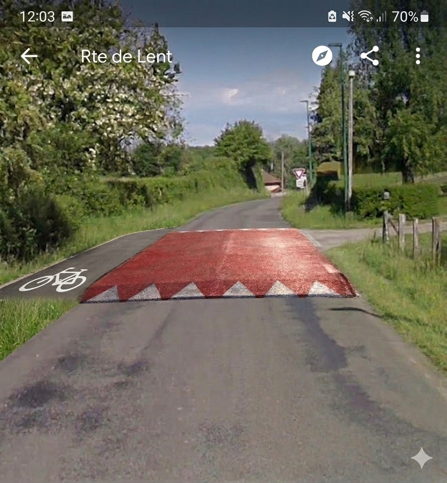 Ce plateau ralentisseur aura une double fonction : ralentir les véhicules entrant et sortant de Lent et constituer un passage protégé pour les vélos et piétons qui iront sur ou viendront de la voie douce