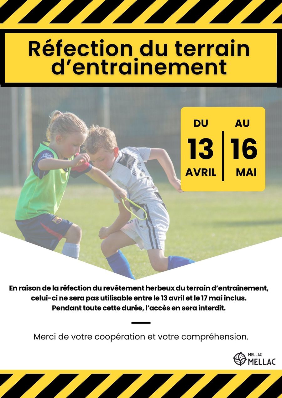 En raison de la réfection du revêtement herbeux du terrain d’entrainement,