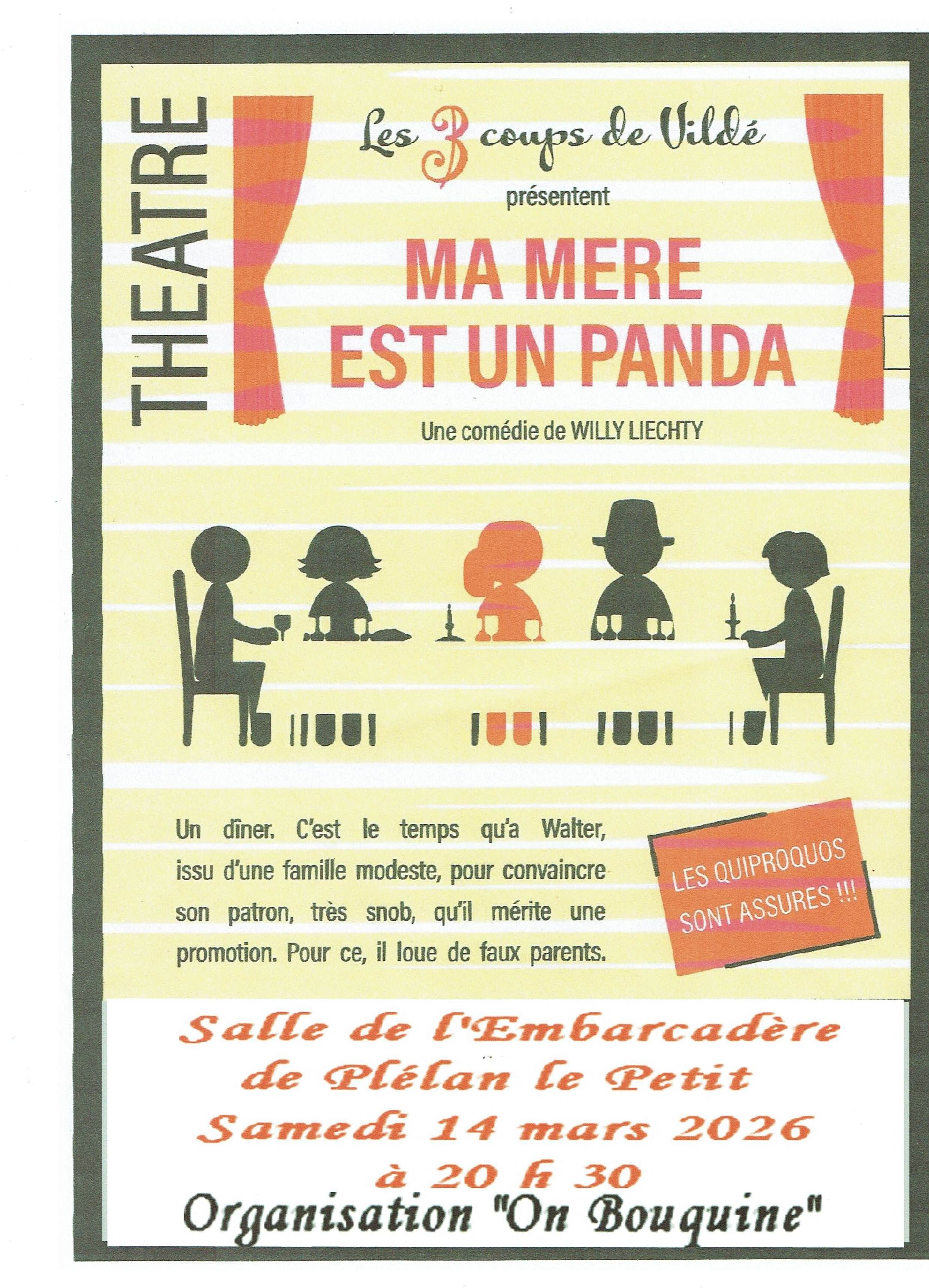 L'association “On Bouquine” organise un théâtre le samedi 14 mars à 20h30 à la salle de l'Embarcadère de Plélan le Petit avec la troupe de Vildé.