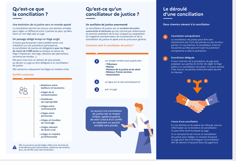La conciliation permet de régler gratuitement les litiges du quotidien (voisinage, consommation, logement, etc.) sans passer par un procès.