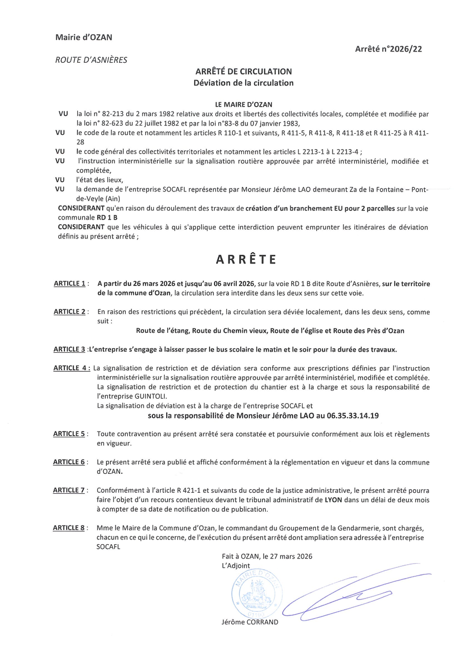 Arrêté de circulation - Déviation