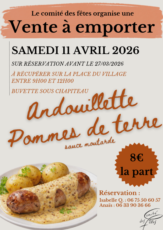 À RÉCUPÉRER SUR LA PLACE DU VILLAGE le samedi 11 avril