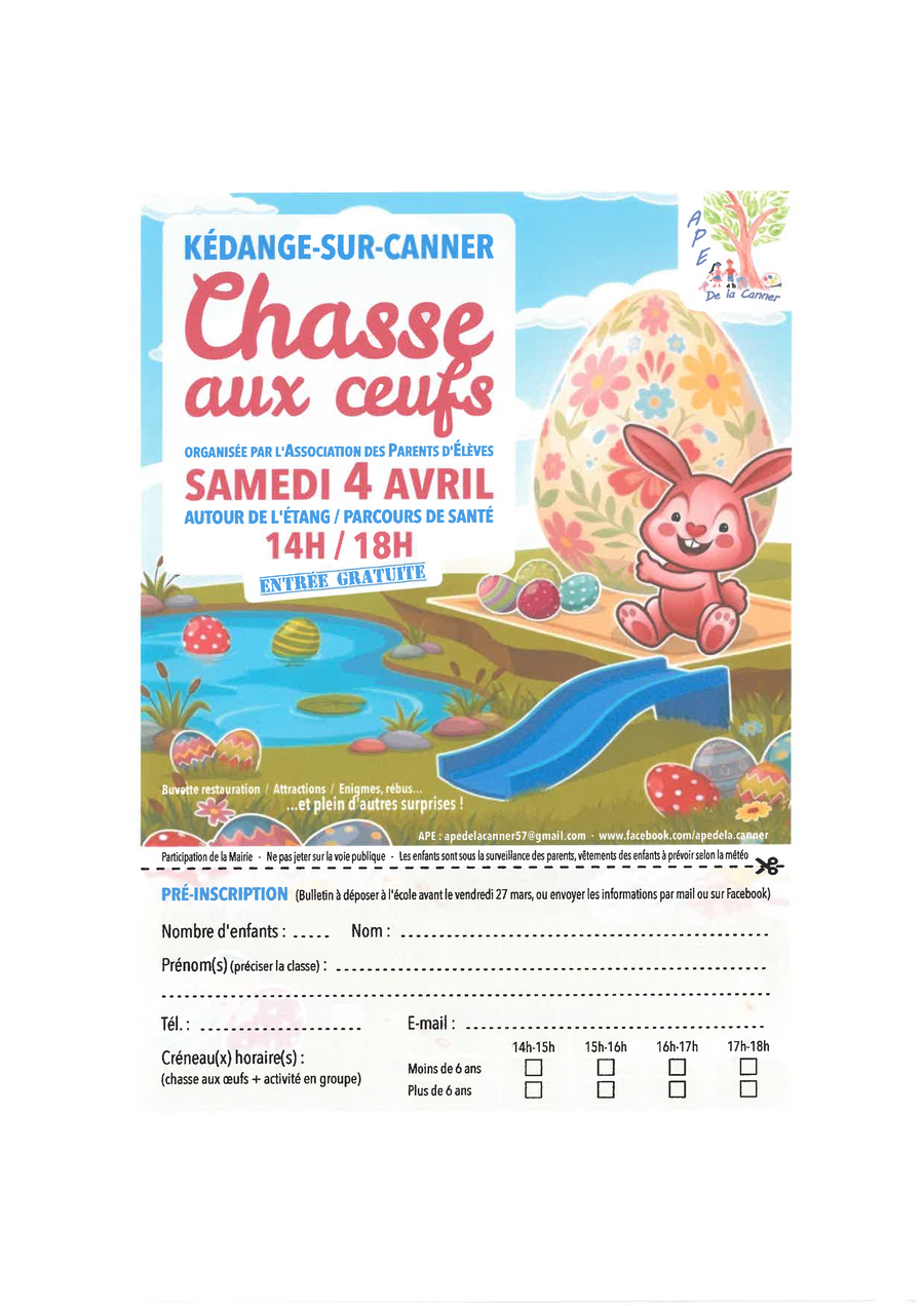 Formulaire d'inscription à remettre à l'école ou dans la boîte aux lettres de la Maire
