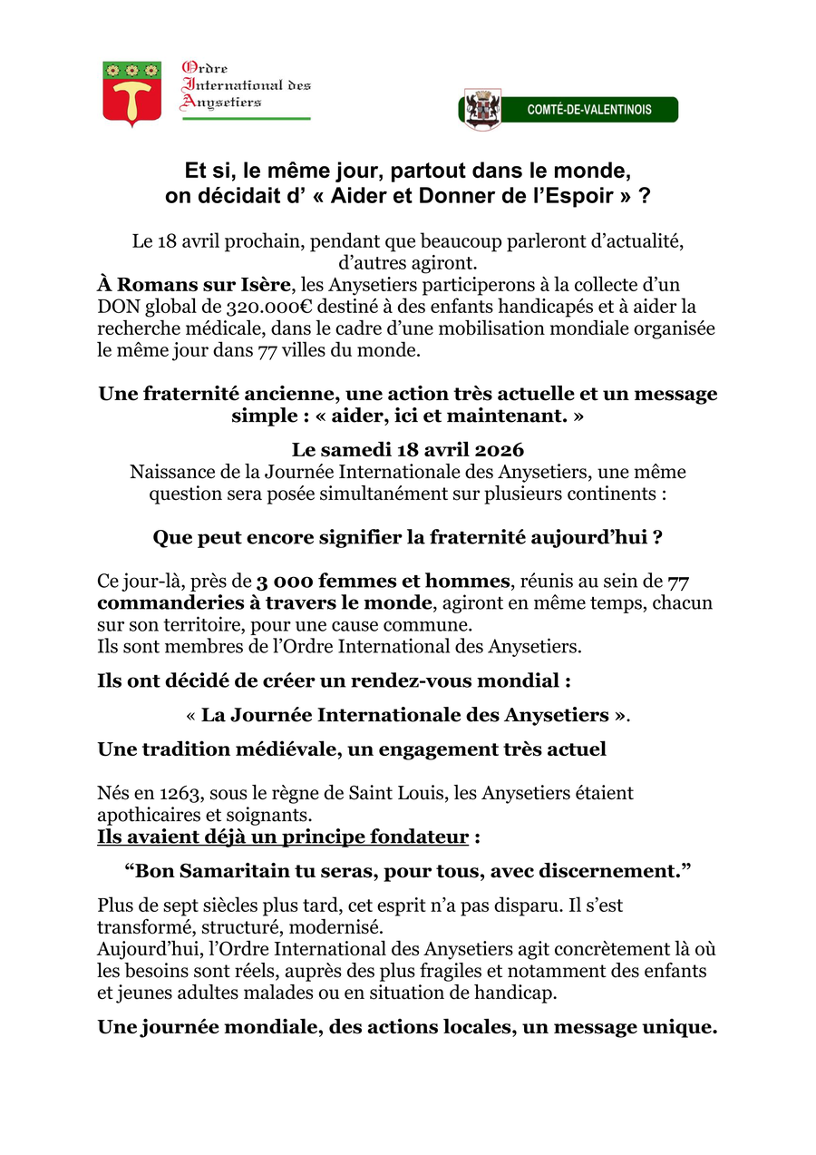 Journée Internationale de l'Ordre prévue le samedi 18 avril 2026