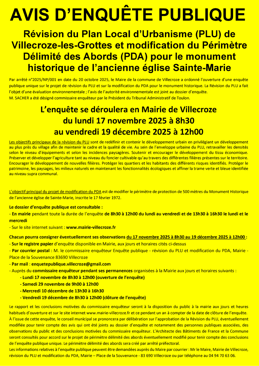 MONUMENT HISTORIQUE et PLU : enquête publique