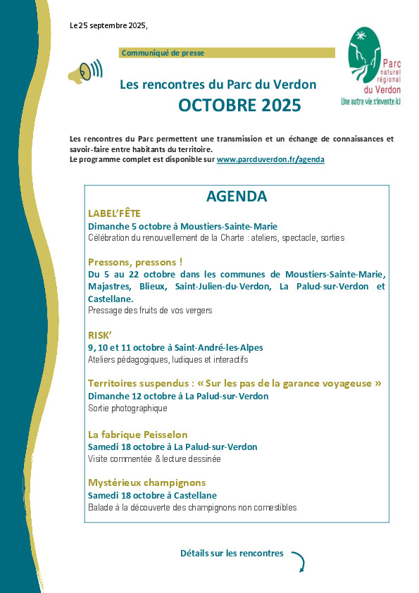 Les RENCONTRES du parc du Verdon : octobre 2025