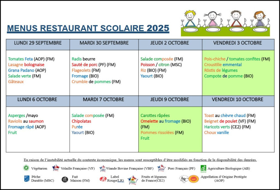 MENUS du restaurant scolaire du 29/09 au 10/10