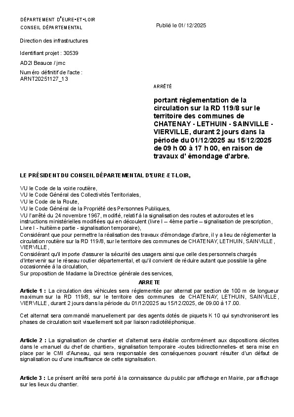 ARRETE DE CIRCULATION CMI AUNEAU - RD 119/8
