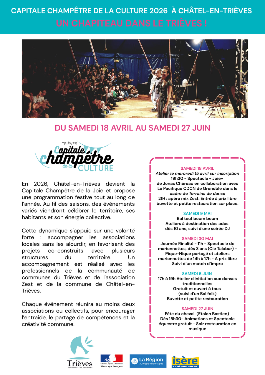 Sous le chapiteau de Cordéac: un premier évènement en ce mois d'avril: