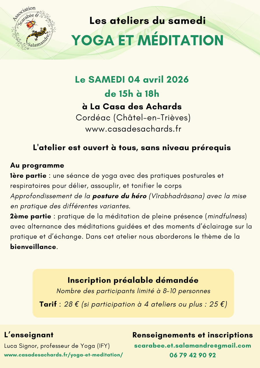 4 avril: Atelier yoga et méditation