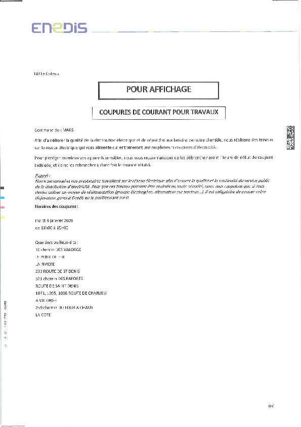 Coupures de courant pour travaux