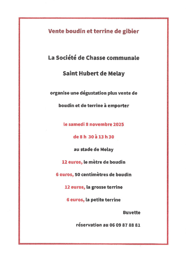 VENTE DE BOUDIN ET TERRINE ST HUBERT