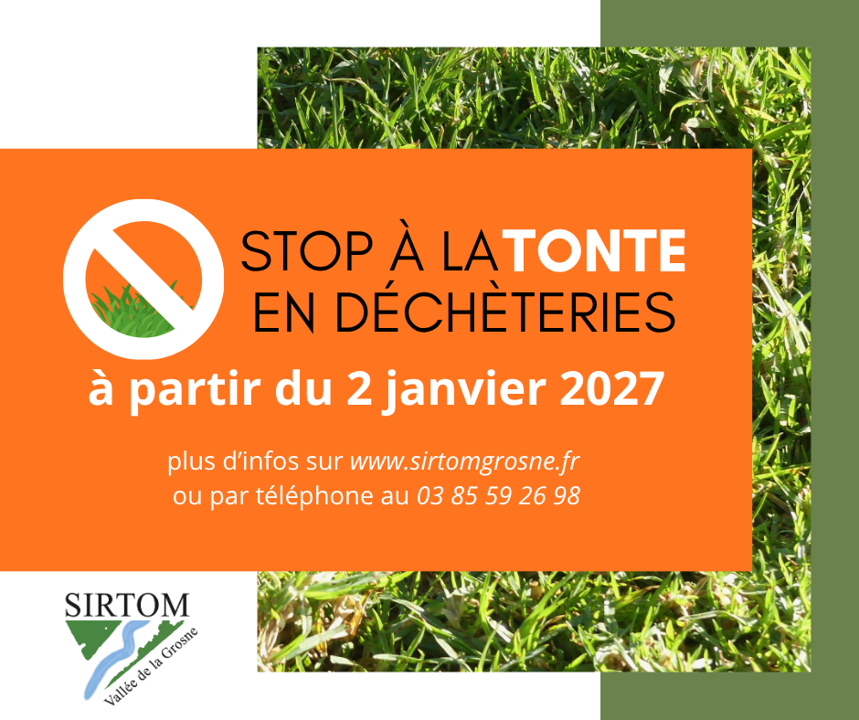 🚫 À compter de janvier 2027, les tontes de pelouse ne seront plus acceptées dans les 5 déchèteries du territoire.
