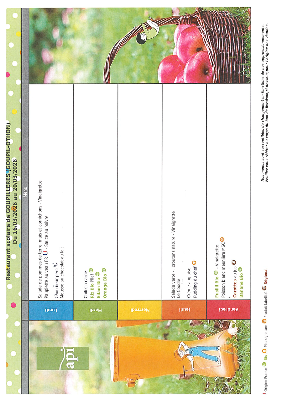 menus 16 au 20 mars