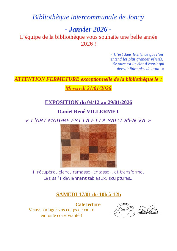 Bibliothèque intercommunale de Joncy - Programme de janvier 2026