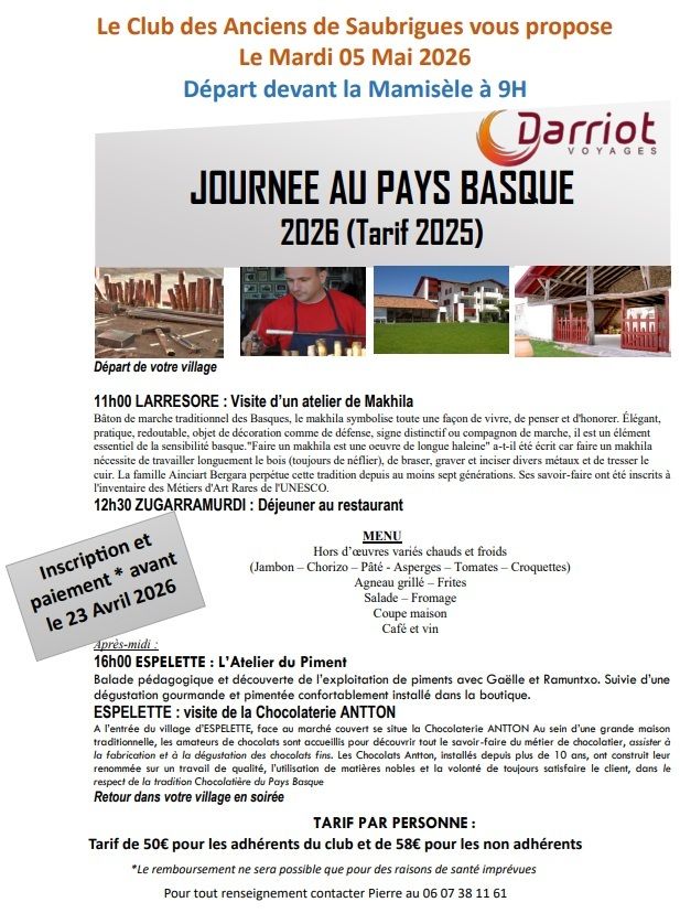 Le Club des anciens vous propose une journée au Pays Basque !