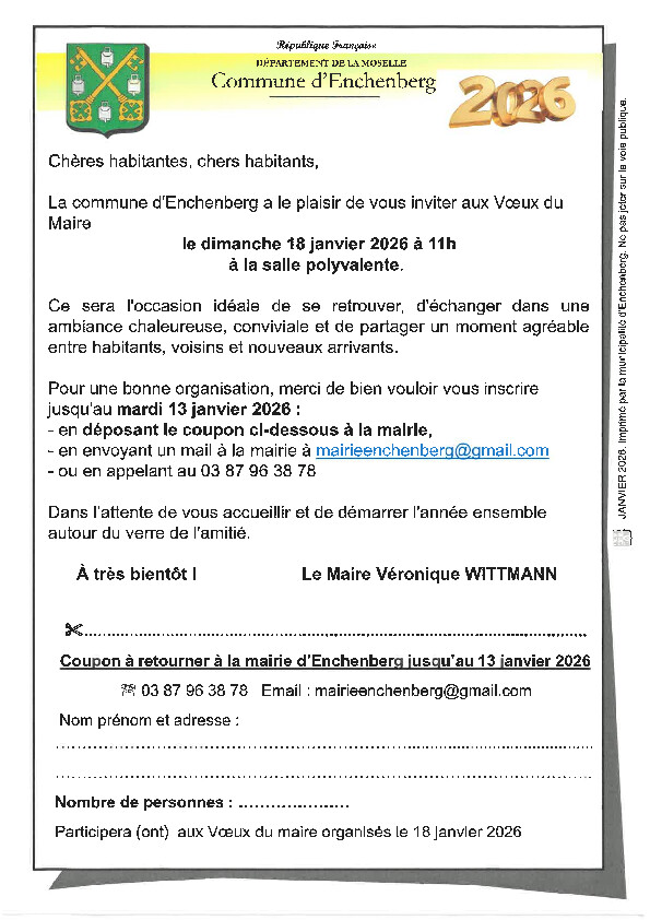 VŒUX DU MAIRE POUR LES HABITANTS D'ENCHENBERG