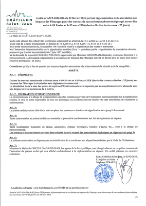 En raison de travaux de raccordement photovoltaïque, la circulation sur l'Impasse des Pâturages sera perturbée entre le lundi 09 février et le jeudi 05 mars 2026.